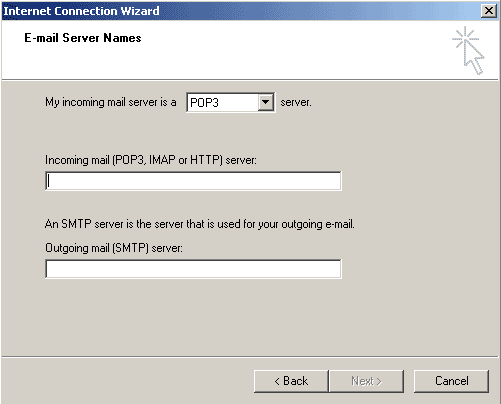 In the "Incoming mail (POP3, IMAP or HTTP) server" field