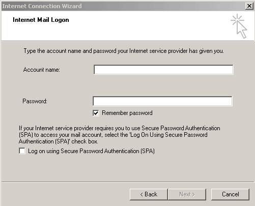In the "Account name" field enter your hosting account
